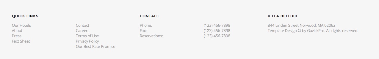 Links at the footer are based on the following HTML structure
