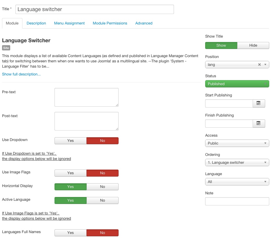 If you wan to create a language switcher as in demo, please create a new instance of Language switcher module, place it at the lang module position and configure it as below: